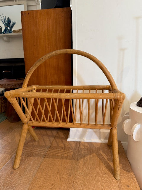 Very functional vintage magazine rack with awesome detail. Perfect for the weekend papers or a stack of books.