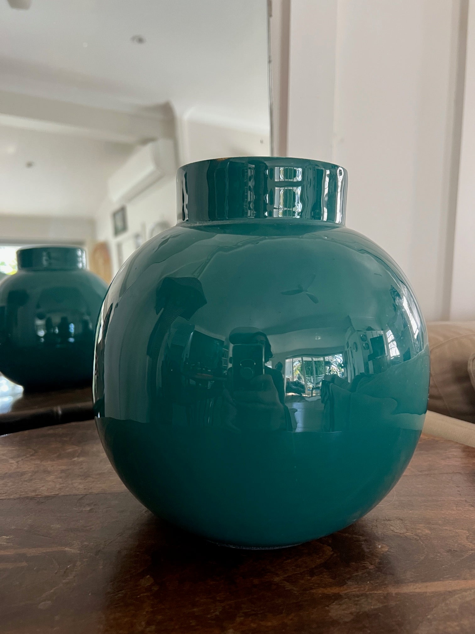 Dimensions: 19cm w, 21cm h (vase opening 9.5cm)