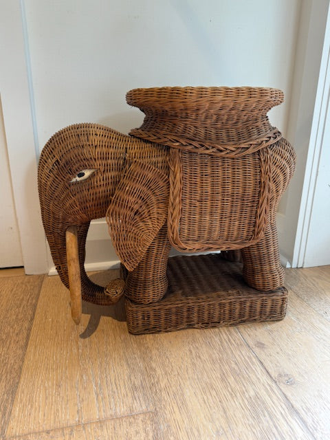 Fabulous vintage rattan wicker elephant. Adds texture and interest to any room.